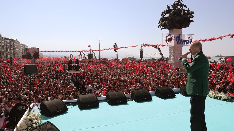CUMHURBAŞKANI Erdoğan, partisinin Gündoğdu Meydanı'nda düzenlediği mitingde, efeleriyle, efsaneleriyle, Çaka Bey'den Gazi Mustafa Kemal'e gazileri, yiğitleri, şehitleriyle maruf İzmir'in tüm hanelerindeki vatandaşlara selamlarını iletti.