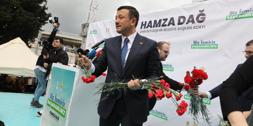 İzmir'de AK Parti İzmir Büyükşehir Belediye Başkan Adayı Hamza Dağ'dan gövde gösterisi. Cahit Külebi şiiri ile başladı..