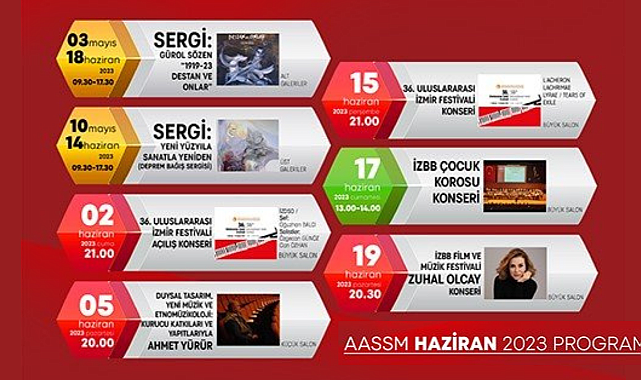 Türkiye’nin en prestijli kültür-sanat mekanlarından olan İzmir Büyükşehir Belediyesi Ahmed Adnan Saygun Sanat Merkezi (AASSM), Haziran ayında da çok önemli kültür-sanat etkinliklerine ev sahipliği yapacak.