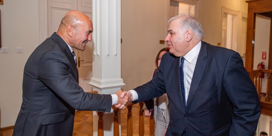 İzmir Büyükşehir Belediye Başkanı Tunç Soyer, Yunanistan’ın Ankara Büyükelçisi Christodoulos J. Lazaris ve Yunanistan İzmir Başkonsolosu Despoina Balkiza’yı ağırladı. Ülkeler ve şehirler arasında kurulacak kültürel ve ticari ilişkilerin ele alındığı görüşmede Başkan Tunç Soyer, Yunanistan ile çok yakın ilişkiler geliştirmek istediklerini ifade ederek “Kültürümüz ve yaşam tarzımız arasındaki benzerlik göz ardı edilemez. Kentlerimiz arası işbirliklerini geliştirmek için barışı, dostluğu yerelde güçlendirebiliriz” dedi.