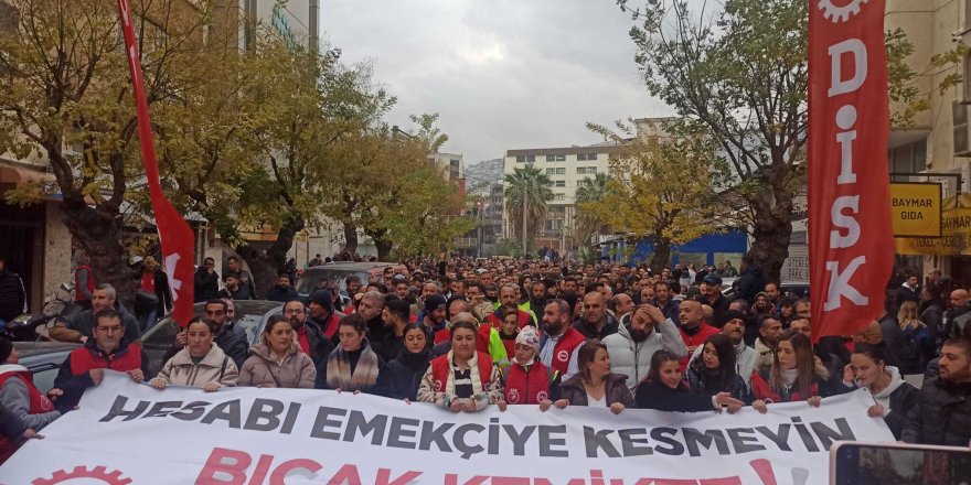 Devrimci İşçi Sendikaları Konfederasyonu'nda (DİSK) örgütlü, İzenerji ve İzelman'da çalışan 7 binin üzerinde işçi, maaşlarının geç ödenecek olması dolayısıyla eyleme geçti. İşçiler, tam gün iş bırakarak DİSK İzmir İl Binası önünden yürüyüş başlattı. İşçilerin yürüyüşü, İzmir Büyükşehir Belediyesi önünde bitti. İşçilerin eylemine, İzBB'de örgütlü memur sendikası Tüm-Bel SEN de katıldı. DİSK Ege Bölge Temsilcisi ve DİSK Genel-İŞ İzmir 2 Nolu Şube Başkanı Ercan Gül, belediye önünde binlerce işçinin katılımıyla basın açıklaması gerçekleştirdi.