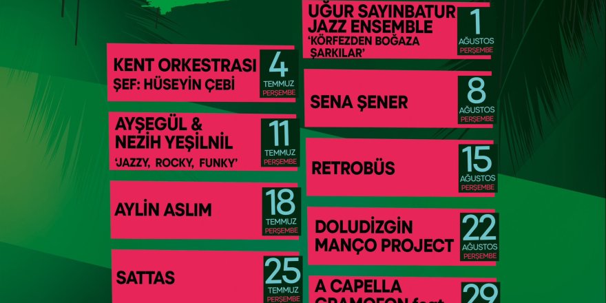 İzmir Büyükşehir Belediyesi tarafından bu yıl yedinci defa düzenlenen Çim Konserleri İzmirlileri yine sanatla buluşturacak. 4 Temmuz’da Kent Orkestrası ile başlayan program, birbirinden farklı sanatçı ve gruplarla Tarihi Havagazı Fabrikası’nda ücretsiz olarak İzmirlilerle buluşmayı sürdürecek. Çim Konserleri her hafta perşembe günü saat 21.00’de düzenlenecek.