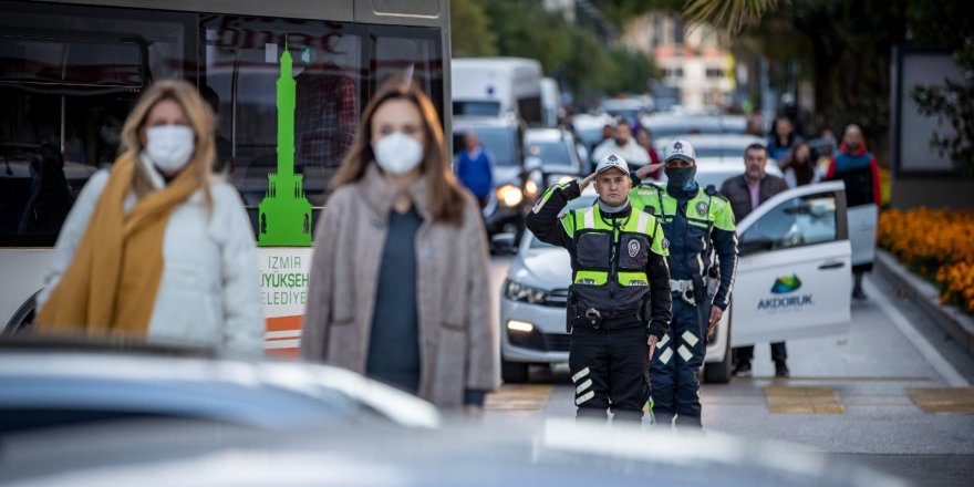 Mustafa Kemal Atatürk’ün hayata gözlerini yumduğu saat 09.05’te İzmir’de hayat siren sesleri eşliğinde durdu. Cumhuriyet Meydanı’ndaki saygı duruşunun yanı sıra kentin dört bir yanında sürücüler, araçlarının kornalarıyla sirenlere eşlik ederken, İzmirliler bulundukları yerde iki dakikalık saygı duruşunda bulundu.