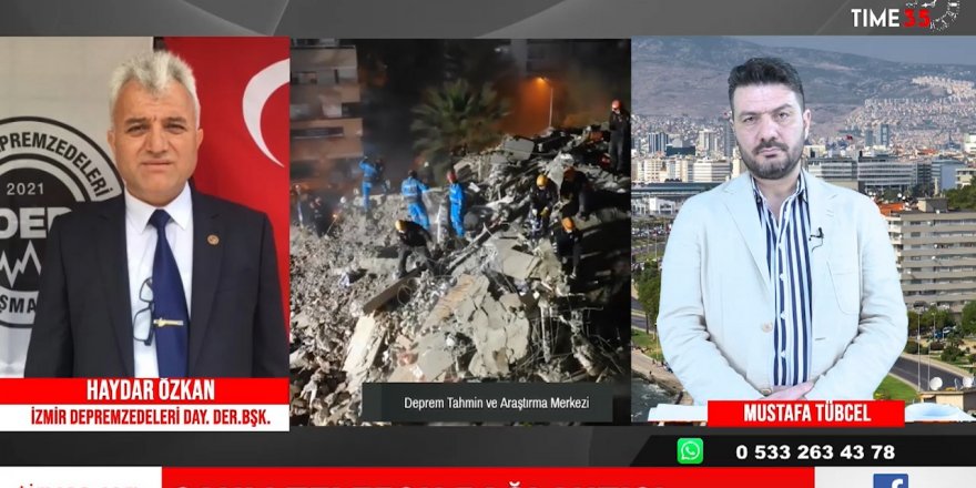 İzmir Depremzedeleri Dayanışma Derneği Başkanı Haydar Özkan TIME 35 Televizyonu'nda Mustafa Tübcel'e konuk oldu. Tübcel'in bu depremzedelerin hali ne olacak? Gelinen son durum nedir? sorusuna Haydar Özkan şöyle cevap verdi.