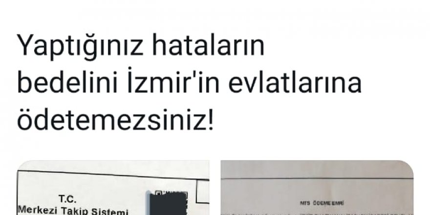 İzmir Büyükşehir Belediyesi'nin, babası vefat eden 4 yaşındaki bir çocuğa, icra takibi göndermesi üzerine, AK Parti kanadından ard arda tepkiler geldi. İzmir Büyükşehir Belediye Meclisi AK Parti Grup Başkanvekili Özgür Hızal, ''Kayıp kaçaktan dolayı yılda 660 milyon TL'yi havaya kaptıran İZSU'nun, 2017 doğumlu bir çocuğa, vefat eden babasının borcu sebebiyle icra takibi başlattığını üzülerek öğrendik. Yaptığınız hataların bedelini İzmir'in evlatlarına ödetemezsiniz!'' dedi.
