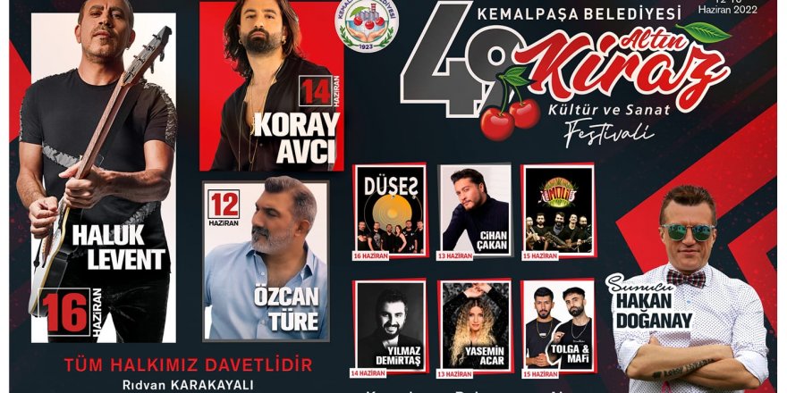 Kemalpaşa Belediyesi’nin pandemi nedeniyle iki yıldır gerçekleştiremediği, Kemalpaşa Altın Kiraz Kültür ve Sanat Festivali’nin 49’ncusu, bugün akşam saat 20.00’de gerçekleştirilecek açılış konuşmaları ile başlayacak.