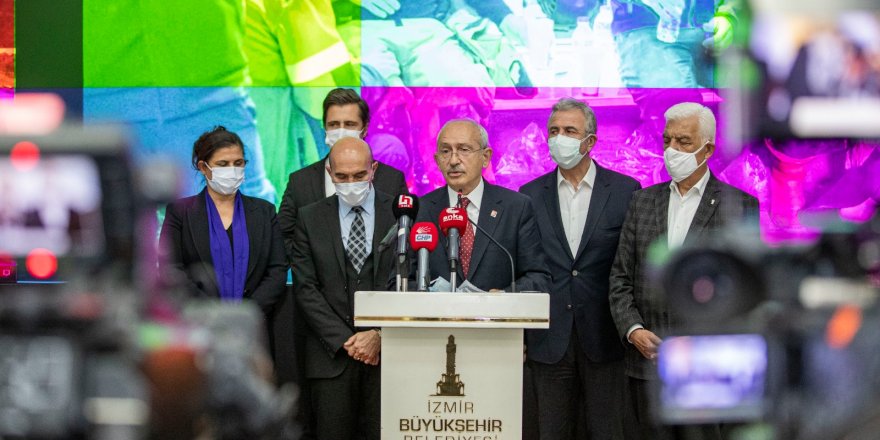 CHP Genel Başkanı Kemal Kılıçdaroğlu, İzmir Büyükşehir Belediye Başkanı Tunç Soyer’le kriz merkezinde basın açıklaması yaptı. İzmir’i vuran 6,9 büyüklüğündeki deprem nedeniyle arama kurtarma çalışmalarının devam ettiğini söyleyen Kılıçdaroğlu, “Hızla kentsel dönüşüme ihtiyacımız var. Bürokraside engeller var. Bu engellerin hızlı bir şekilde aşılmasına ihtiyaç var” dedi. Kılıçdaroğlu ayrıca CHP olarak üzerlerine düşen görevleri yapmaya hazır olduklarını da söyledi.