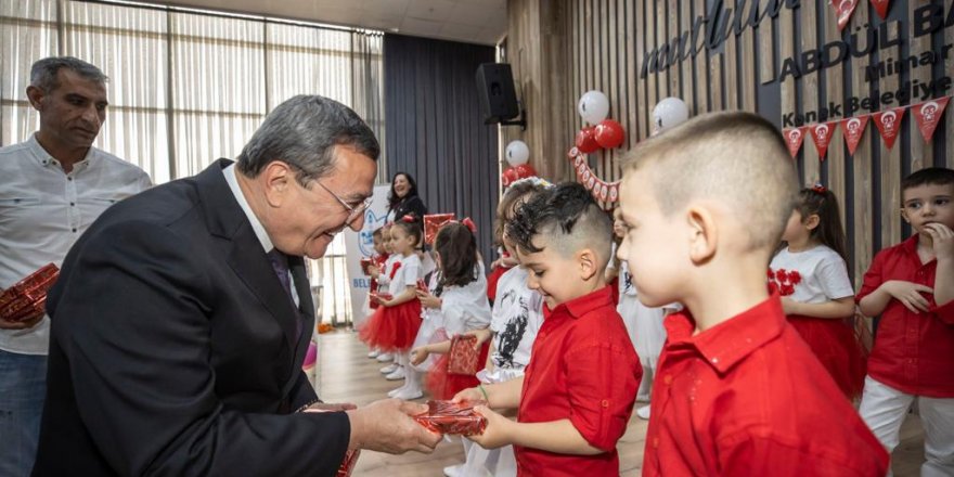 Konak Belediyesi’nin eğitimde fırsat eşitliği yaratan projesi Minikler Konağı’nın öğrencileri, 23 Nisan Ulusal Egemenlik ve Çocuk Bayramı etkinlikleri kapsamında muhteşem bir gösteri sahneledi. Belediyenin Toros Sosyal Tesisinde düzenlenen 23 Nisan gösterisini Konak Belediye Başkanı Abdül Batur, CHP Konak İlçe Başkanı Akın Küçükoğullarından, çocukların aileleri ve muhtarlar izledi. Minikleri bol bol alkışlayan, gösterilerini heyecanla takip eden Başkan Batur, “İşte, Ulu Önder Mustafa Kemal Atatürk’ün emanet ettiği cumhuriyetimizi yaşatacak çocuklar. İşte, Atatürk’ün çocukları. Sizler bizim umudumuz, geleceğimiz, her şeyimizsiniz. Sizleri çok seviyoruz” dedi.