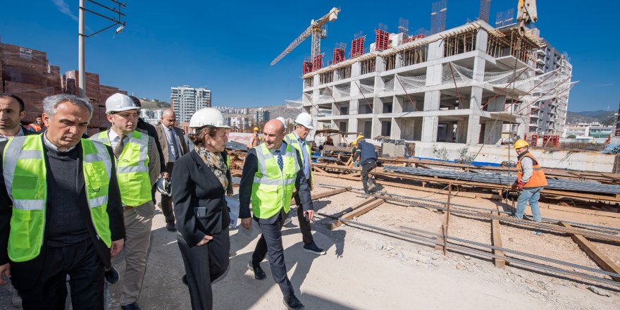 Saha gezisinde konuşan Başkan Soyer, “Burada temel attığımız günü hatırlıyorum. O günden bugüne binaların bu kadar yükselmiş olmasının çok değerli olduğunu söylemeliyim. Arkadaşlarımız canla başla çalışıyorlar. Bir yandan da uzlaşması sağlanan, tapusu devrolunan yerlerin yıkımıyla ilgili süreç devam ediyor. Bugün o son kalan bölgelerin yıkım çalışması yapılıyor” dedi.