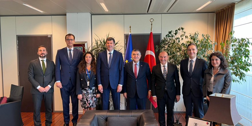 Başkan Soyer ile Avrupa Komisyonu Türkiye Direktörü Henrike Trautmann’ın bir araya geldiği toplantıda Avrupa Sürdürülebilir Kalkınma Fonu, Denizcilik karbonsuzlaştırma fonu, elektrikli feribot, otobüs filosu projeleri ve hem İzmir’in kent ekonomisi hem de iklim krizi ile mücadele için önem arz eden yenilenebilir enerji projeleri ele alındı. İzmir Limanı'nın Türkiye’nin ihracatı için öneminden bahseden Başkan Soyer, İzmir’deki uluslararası fuarların da önemini vurguladı.