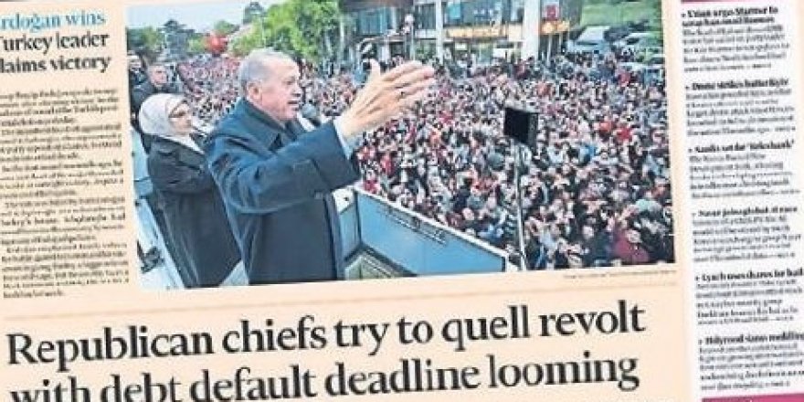 - İNGİLİZ Financial Times gazetesi, manşetten verdiği haberinde, "Erdoğan kazandı, Türkiye lideri zafer ilan etti" başlığını kullandı.