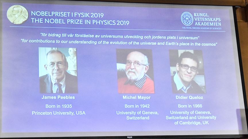 Nobel Fizik Ödülü, evrenin gelişiminin ve "Dünya'nın kainattaki yerinin" anlaşılmasına sundukları katkı nedeniyle bilim insanları James Peebles ile Michel Mayor ve Didier Queloz'a verildi.