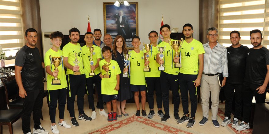 Şampiyon takımların kaptanları ve antrenörleri, takımlarını temsilen Balçova Belediye Başkanı Fatma Çalkaya’yı ziyaret etti. Kupa sevincini kendisi ile paylaşan futbolcuları tebrik eden Başkan Çalkaya “Biz çocuklarımıza hem kötü alışkanlıklardan uzak durmaları hem de sağlıklı bireyler olmaları için spor eğitimi veriyoruz. Ancak takımlarımız bu eğitimi çok ileri seviyelere taşıyarak şampiyonluklar elde etti. Kaptanlarımız ve hocalarımız aracılığıyla tüm sporcularımızı kutluyorum” diye konuştu.