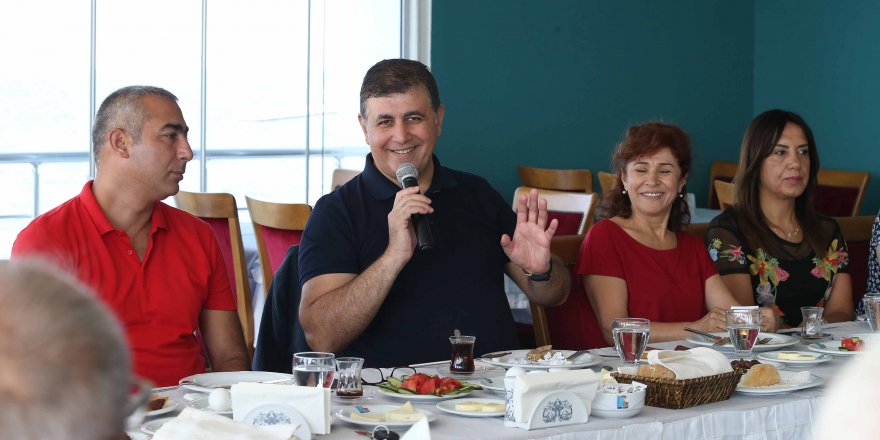 Muhtarlarla Kent Restoran’da kahvaltılı bir buluşma gerçekleştiren Başkan Tugay, “Bugün ben konuşmayacağım sizleri dinleyeceğim” dedi. Bunun üzerine muhtarlar sorunlarını aktararak çözüm önerilerinde bulundu. Konuşmalarda ulaşım, pazar yerleri, parklar ve kasislerle ilgili şikayetlerin çoğunlukta olduğu görüldü.