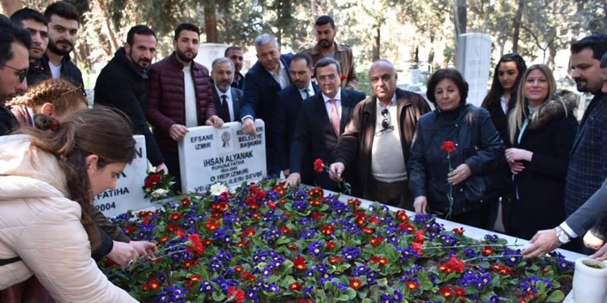 İzmir’in efsane belediye başkanlarından İhsan Alyanak, ölüm yıldönümünde Altındağ Kokluca Mezarlığı’ndaki kabri başında anıldı. Anma törenine Alyanak ailesi adına torunu Gizem Alyanak Şenyüz ve eşi Erdal Şenyüz, CHP Konak Belediye Başkan adayı Abdül Batur, CHP Konak İlçe Başkanı Çağrı Gruşcu, CHP Konak belediye meclis üyeleri ve partililer ve Alyanak’ın sevenleri ve dostları katılırken, sağlık sebepleri ile ailenin diğer fertlerinin katılamadığı bildirildi. Anma programının moderatörlüğünü yapan Recai Acar ‘İzmir’imize büyük emekler vermiş, değerli abimiz İhsan Alyanak’ı anmak hepimizin görevi ve borcu’ diyerek anma törenine başladı.
