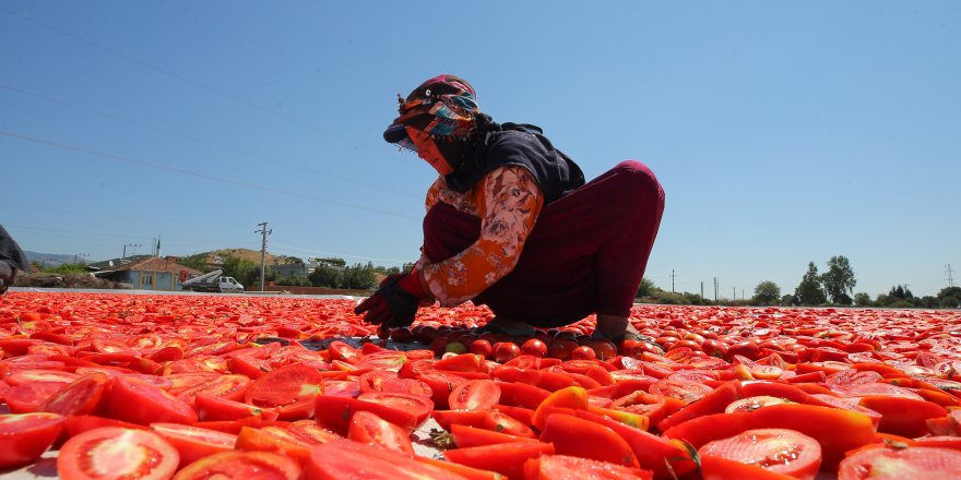 Türkiye'nin kurutulmuş domates ihracatında lider konumda bulunan Ege Bölgesi'nde hasadın ardından domatesler kurutma işlemi için güneşe serildi.