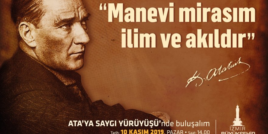 İzmir Büyükşehir Belediyesi, 10 Kasım Atatürk'ü Anma programı kapsamında bir dizi etkinlik planladı. Türkiye Cumhuriyeti'nin kurucusu Mustafa Kemal Atatürk'ün 81’inci ölüm yıldönümü nedeniyle düzenlenecek "Ata'ya Saygı Yürüyüşü" 10 Kasım Pazar günü saat 14.00'de Alsancak Limanı önünden başlayacak. 12’nci kez düzenlenecek yürüyüşe katılacak İzmirliler Atatürk portrelerinden oluşan 350 metre uzunluğundaki dev bayrağı taşıyarak Cumhuriyet Meydanı'na kadar ilerleyecek. Bu anlamlı yürüyüşe, İzmir Büyükşehir Belediye Başkanı Tunç Soyer de katılacak. "Ata'ya Saygı Yürüyüşü"nün son bulacağı Cumhuriyet Meydanı'nda, İzmir Büyükşehir Belediyesi’nin düzenlediği Ata’yı anma konseri olacak. Uğur Sayınbatur’un şefliğini üstlendiği “Modern Brass Ensemble” Atatürk'ün sevdiği şarkılardan oluşan bir dinleti sunacak.
