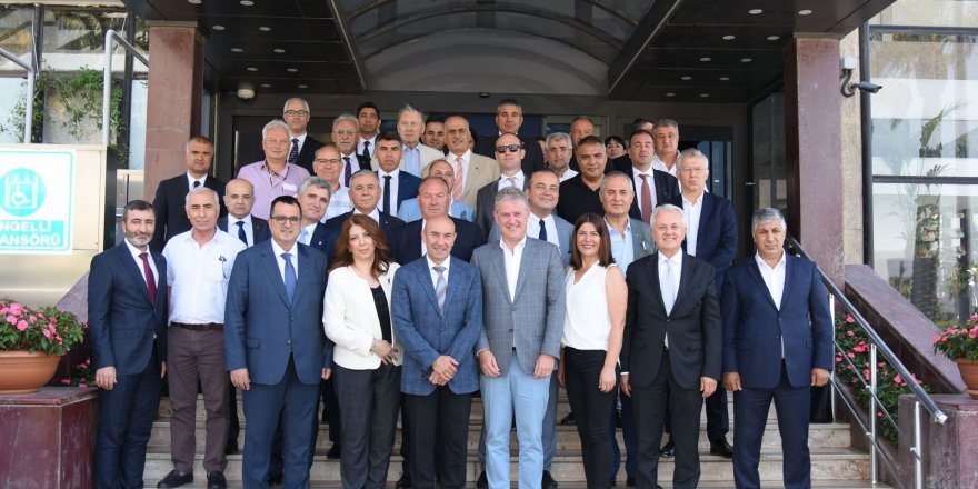İzmir Ticaret Odası Yönetim Kurulu Başkanı Mahmut Özgener başkanlığında, İZTO Meclis Başkanı Selami Özpoyraz, İZTO Yönetim Kurulu Başkan Yardımcısı Cemal Elmasoğlu, İZTO Yönetim Kurulu ve Meclis üyeleri ile sektör temsilcilerinden oluşan heyet, İzmir Büyükşehir Belediye Başkanı Tunç Soyer ile biraraya geldi. Büyükşehir Belediyesi Çetin Emeç Toplantı Salonu’nda gerçekleşen toplantıya belediye bürokratları da katıldı. İZTO bünyesinde faaliyet gösteren 79 meslek komitesinden derlenen sorun, öneri ve talepleri Tunç Soyer’e aktaran İZTO Yönetim Kurulu Başkanı Mahmut Özgener “Sayın Başkanımızla İzmir Ticaret Odası üyelerinin sorunları aktarmak, kente ilişkin çözüm önerilerimizi ve talepleri iletmek üzere bir araya geldik. Özlediğimiz bir yaklaşımdı bu. Tüm üyelerimiz adına komitelerimizden gelen sorunlara gösterdiği duyarlılık nedeniyle Sayın Tunç Soyer’e teşekkür ediyorum” dedi.