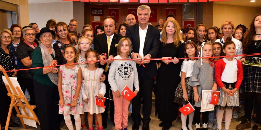Narlıdere Belediyesi bünyesinde faaliyet gösteren Çocuk Resim Kursu öğrencileri, Cumhuriyet Bayramı’nın 96. yılını resim sergisi ile kutladı. En küçüğü 9, en büyüğü 14 yaşındaki 37 minik ressamın eserleri ziyaretçilerin beğenisini topladı. Başkan Ali Engin “Çocuklarımızın küçük yaşta sanata yönelmesi ve böyle önemli etkinliklerle becerilerini süslemesi mutluluk verici” dedi.
