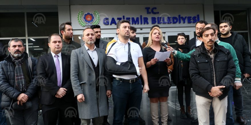 Genç Gazeteciler Platformu üyeleri, Belediye-İş Sendikası yöneticilerinin saldırısına uğradığı iddia edilen gazetecilerle ilgili açıklama yaptı.Platform üyeleri, sendika yöneticilerinin saldırısında yaralandığını öne süren Gaziemir Belediye basın danışmanı Emre Döker ve basın birimi çalışanı Gürkan Çetinkaya'ya destek için belediye binası önünde toplandı.