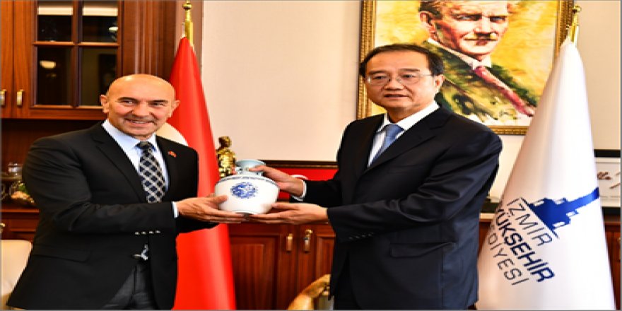 88’inci İzmir Enternasyonal Fuarı kapsamında İzmir’i ziyaret eden Partner Ülke Çin Halk Cumhuriyeti Ankara Büyükelçisi Li Deng, İzmir Büyükşehir Belediye Başkanı Tunç Soyer’i makamında ziyaret etti.