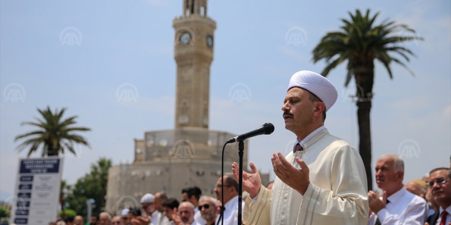 İzmir Müftüsü Recep Şükrü Balkan'ın kıldırdığı namaza çeşitli sivil toplum kuruluşları, siyasi parti temsilcileri ve vatandaşlar katıldı.